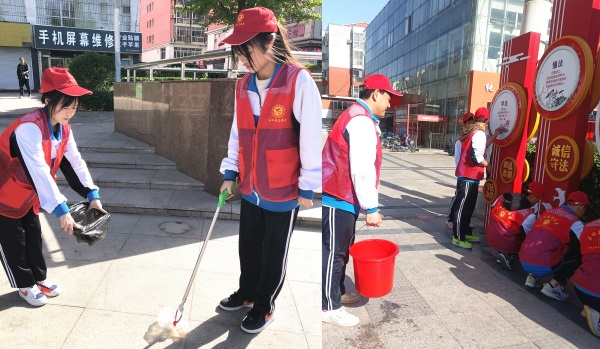 活动中,学生志愿者们坚持“我劳动,我光荣”的思想,自带工具分别对广场周围的展牌进行了擦拭,对公共区域散乱垃圾、烟头进行了清理,清除了卫生死角,将整个广场打扫的干干净净,他们的举动也得到了广场居民的一致好评。
