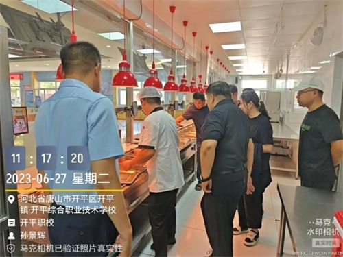 2023年6月27日11:15分,区委常委、纪委书记马文彪 在区纪委二级主任科员、 专项办主任李海龙 、开平区市场监督管理局马家沟分局长于长波的陪同下,到职校精准监督学校食堂食品安全情况,为学生舌尖上的安全保驾护航。