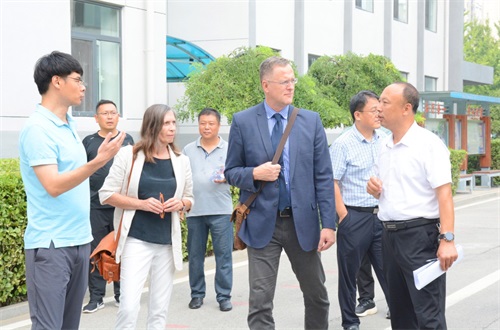 两位德国专家在学校领导班子的引领下,完整参观了丰南职教中心主校区的教学区和实训中心。学校党委书记杜亦国沿路向专家介绍了学校的办学历史、办学条件和办学特色。党委副书记校长韩振天、教学副校长董立群和各专业的骨干教师就专业建设情况为专家做解答。