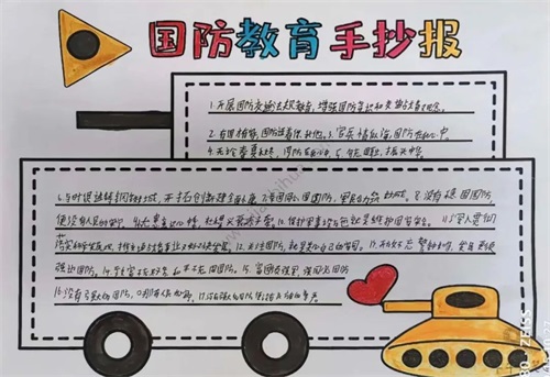 “观看一部宣传片”“举办一期手抄报”“阅读一本主题图书”,“写一篇读后感”丰富的国防教育活动让关心国防、热爱国防、建设国防、保卫国防成为师生的思想共识和自觉行动。