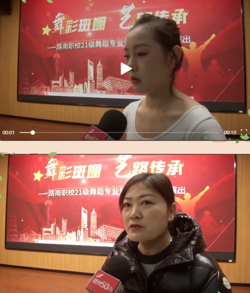 演出开始前,唐山电视台直播50分栏目记者采访了我校边亮校长、合作培训学校任伟校长、21舞蹈班赵力瑶同学及学生家长。