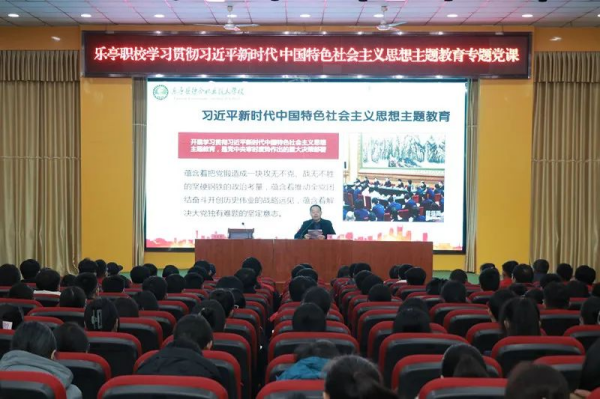 为扎实开展学习贯彻习近平新时代中国特色社会主义思想主题教育,推动全校师生在主题教育中感悟思想伟力,凝聚奋进力量,增强担当意识,促进乐亭职业教育高质量发展,12月8日,乐亭职校党总支书记张树晨带头讲专题党课,以“学思践悟新思想 做新时代的‘大先生’”为题,筑牢广大师生的思想政治根基,推动学习贯彻习近平新时代中国特色社会主义思想主题教育走深走实、见行见效。学校全体班子成员、党员教师、教研组长、中青年骨干教师及优秀团员代表参加。会议由学校副校长王庆胜同志主持。