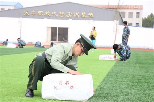 飒爽英姿健步长,喊声震彻练兵场。无论酷暑严寒,每周五下午2:30,在乐亭职校操场上,你都会看见一支着装整齐、训练有素的军训队伍,那是由60余名学生组成的乐亭职校军训教官社团的学生们在开展训练。