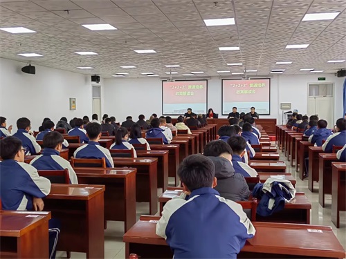 参加此次会议的领导有校长贾艳蕊、副校长昌贵平、机电部主任勾顺和招生就业办主任王振华。机电部“2+2+2”贯通班2023电气2班40名同学以及家长们齐聚九楼会议室,认真聆听校领导对贯通培养的政策解读。会议由王振华主任主持。