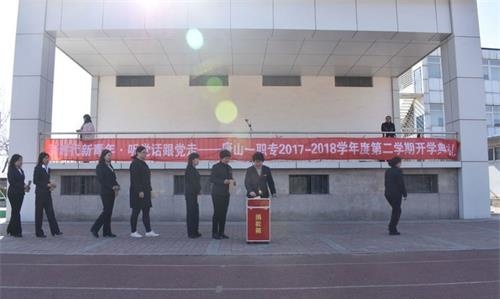 新时代新青年,听党话跟党走。3月15日下午,唐山市第一职业中在主校区操场举行2017-2018学年度第二学期开学典礼。赵军校长发表讲话,质管部德育处王冀虹主任主持。