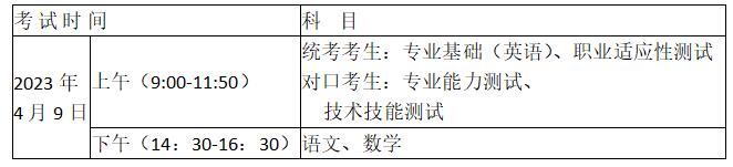 职业技能考试包括专业基础考试和职业适应性测试两科,采取合卷考试方式。其中,考试四类专业基础考试内容为英语,满分100分。职业适应性测试主要考查考生的职业适应能力、职业潜质、专业认知能力、应变能力和道德修养等方面的知识,满分350分。