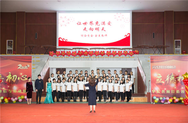 立德树人有道,春风化雨无声。由院工会主办,党办、校办、学生处、团委及学院各相关部门、相关分会协办的"不忘初心,立德树人"2018年元旦联欢会于2017年12月29日在尚德文体活动中心举行。出席联欢会的嘉宾有中国电信唐山市分公司及丰南分公司的领导。唐山劳动技师学院党委书记、院长李文利,副院长王东风及各系(部)、处室的负责同志。全院教职工参加联欢会。