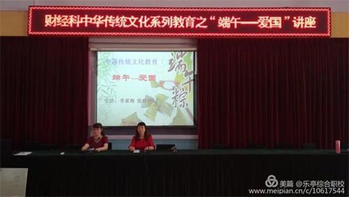 6月14日上午,财经科举行了由李素梅、张桂艳两位老师主讲的"端午—爱国"主题讲座。财经科全体师生参加了此次活动。