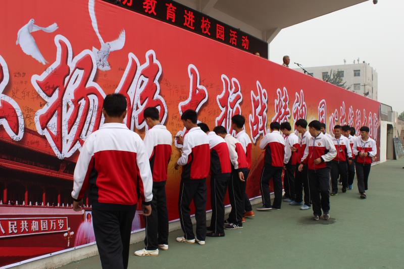学校历来重视学生的军训工作,每年五月组织为期一周的军训活动,通过内务、作息和各项科目的训练,强化学生的团队意识和纪律观念,培养服从命令听指挥的军人作风,为学校准军事化管理奠定基础。每周一举行的升旗仪式和国旗下讲话,传递着正能量,宣传了国防知识,营造了浓浓的爱国氛围。按照学校德育活动安排,每年的四月、十月是爱国主义和民族精神主题教育月,学校通过开展清明节祭扫、主题班团会、国防知识讲座、爱国歌曲大家唱、礼仪素养提升、板报手抄报评比等有针对性的主题教育活动,引导学生养成良好习惯,提高道德素养,弘扬民族精神,增强国防意识。