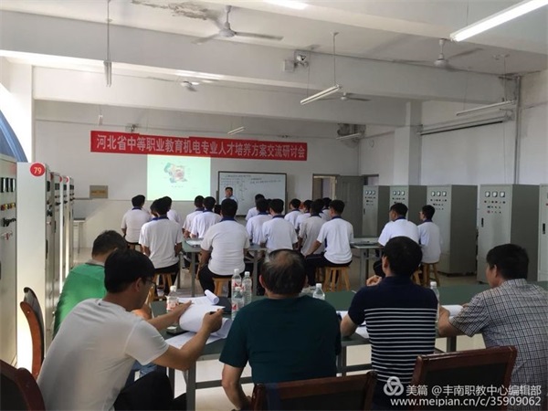 6月28日,河北省中等职业教育机电专业人才培养方案交流研讨会在丰南职教中心会议室召开。丰南职教中心刘天悦校长、河北省职教研究所张永林老师、沧州中捷职业技术学院李红雨副校长、邢台现代职业学校王其厅主任、河北科技工程学校杨志辉主任、昌黎职教中心王云志主任、石家庄工程技术学校孔春梅主任、滦南职教中心崔安忠主任、承德工业学校林连宗老师、廊坊工程技术学校赵海东主任、唐山市教育局职成处高海波老师以及丰南职教中心机电专业部负责人和骨干教师出席会议并参与交流研讨。