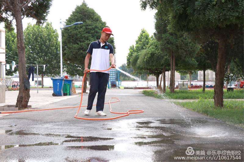 学校领导班子多次召开环保会议,动员部署,多措并举,合理制定《乐亭职校环保攻坚实施方案》,把校园分成四个区域,明确责任人,坚持每天定时洒水除尘;总务处还对校园环境进行了彻底改造和建设,栽植了校园甬路两侧草坪,并安装了自动喷水装置,草坪每天定时开启洒水设备;移栽了大量绿化树,在甬路东侧修建了环境人文景观,再加上高标准塑胶操场顺利竣工,更是确保了全天无烟尘排放。