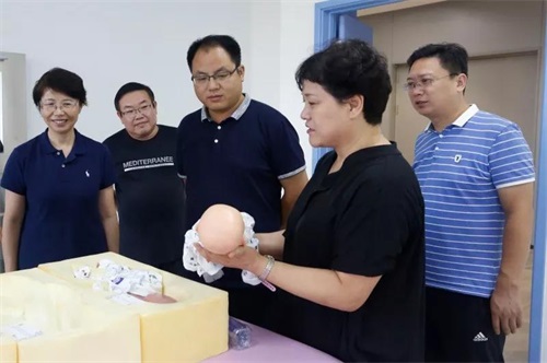 赵东钊一行到职教城护理与健康学院实训中心观看了项目宣传片,了解了职教城建设规模、总体规划、发展理念等情况的介绍。在讲解人员的带领下,赵东钊一行参观了实训中心的教学区、考站区、外科区、护理区、急救区,听取讲解人员对各实训区域规划理念的介绍和学生课程设置。随后,赵东钊一行参观了曹妃甸大数据产业园,曹职院学生公寓、风雨操场等场地。