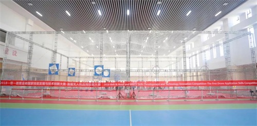本次比赛通过理论及法规考核、穿越机设计作品答辩、无人机组装调试、无人机飞行应用四个阶段考验选手的综合应用能力、应变能力以及操作技能等。其中赛道设立了用于无人机“穿越”的拱门,还有障碍物等,比赛现场设置了观众区、裁判区和选手休息区。