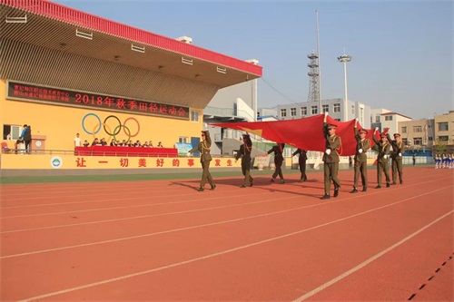 运动员代表、裁判员代表分别宣誓。最后,李全武副局长宣布曹妃甸区职教中心、唐山市曹妃甸高级技工学校2018年秋季田径运动会开幕。