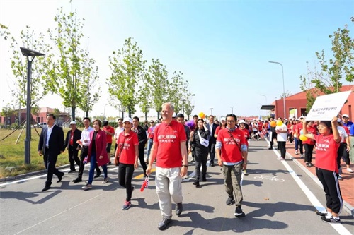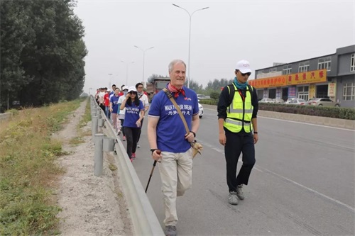 北京曹妃甸国际职教城在曹妃甸职业技术学院的大门口举行了隆重而热烈的欢迎仪式,学生们身着校服,手执中英两国旗帜,列队欢迎。贝茨勋爵抵达终点,在冲刺的那瞬间,Walk Your Dream(为梦想行走)新时代、新征程——贝茨勋爵夫妇公益扶贫徒步活动画上了一个句号。