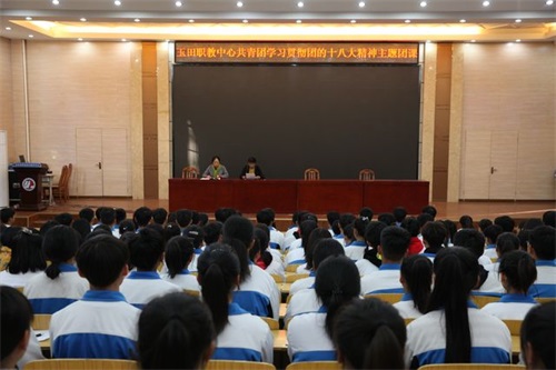 10月11日下午,玉田职教中心在阶梯教室举行2018年新团员入团仪式暨团课教育活动,200余名老团员和即将入团的50名新团员参加了活动。