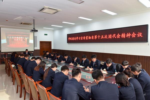 为深刻领会、全面把握团省十五大精神实质,掀起学习宣传贯彻团省十五大精神热潮,引领全院团员青年师生不忘初心,牢记使命,为新时代全面建设经济强省、美丽河北做出企办职业院校青年应有的贡献。学院团委迅速开展学习宣传活动,组织召开团委委员会、主题团会、座谈会和“青年大学习”主题团课等形式的主题活动,学习传达会议精神,牢牢把握共青团是党的助手和后备军这一根本政治定位,紧密团结在以习近平同志为核心的党中央周围,坚持以习近平新时代中国特色社会主义思想为指导,奋力开创新时代学院共青团工作新局面,用自己的蓬勃青春为实现“两个一百年”奋斗目标和中华民族伟大复兴的中国梦作出积极的贡献。