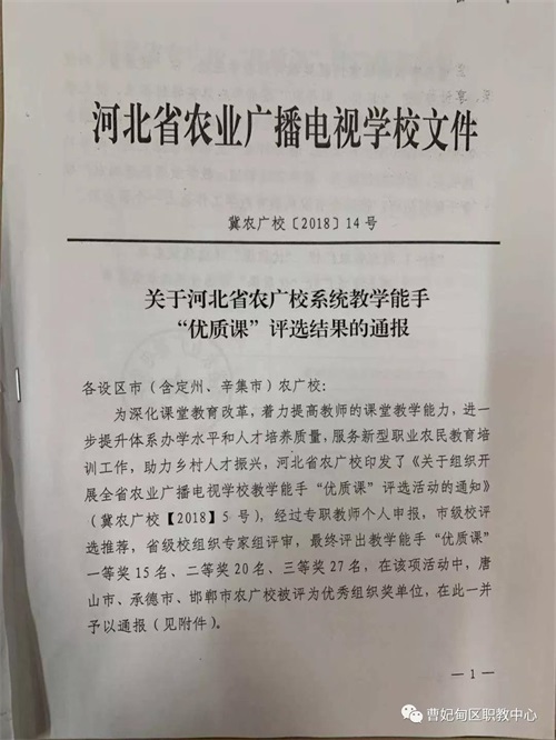 在今年9月份河北省农业广播电视学校组织的教学能手优质课评选中,曹妃甸区职教中心王小茹、毕丽丽、孙艳春、高敬平四位老师凭借出众的教学设计、精良的课件制作、良好的教态教风,共同摘得一等奖(全省共评出一等奖15名)。