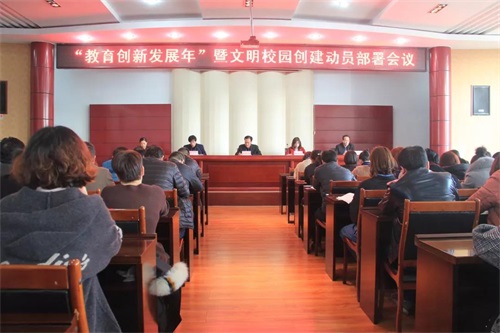 3月6日下午,曹妃甸区职教中心召开“教育创新发展年”暨文明校园创建动员部署会议,全体教职工参加。会议由党政办主任孙婧芳主持。