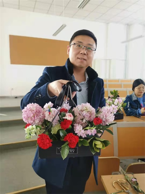 一花一草,在一双双灵巧的双手下,一盆盆色彩缤纷、形态多姿的花束纷纷出炉。看着自己的作品,每个人的脸上都绽开了美丽的笑容。大家充满了成就感,纷纷和自己的花艺作品合影留念。