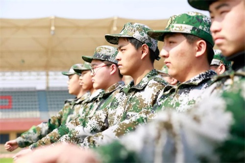 在军训中接受寒风烈日的淬炼。