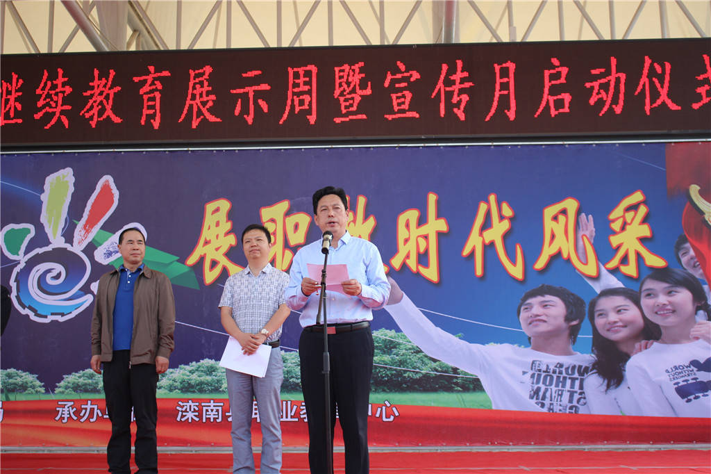滦南县政府副县长李进有宣布“滦南县职业教育和继续教育展示周暨宣传月活动”正式启动
