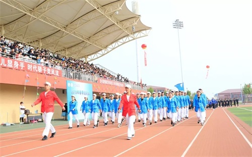 伴随着慷慨激昂的《运动员进行曲》,国旗护卫队、校徽护士队、旗林方队、裁判员方队、各院系师生以及教职员工、职教城公司、物业公司等方队迈着矫健的步伐依次步入会场,大家喊着响亮的口号,向主席台致敬,接受领导和全校师生的检阅。他们展现了曹职院师生意气风发的精神状态和朝气蓬勃的精神风貌,展示了职教城人艰苦奋斗,勇攀高峰的运动精神!