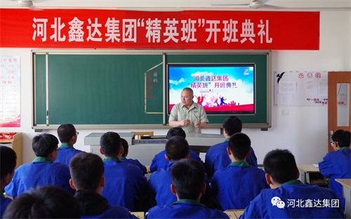 为进一步落实集团人才培养战略,深化校企合作,促进双方优势互补、互利共赢,5月22日,河北鑫达集团与迁安职教中心(技师学院)互设基地揭牌仪式暨“鑫达精英班”开班典礼隆重举行,迁安职教中心校长凌志杰,副校长玄远程,机电工程系主任宁文军,装备制造工程系主任崔建飞,冶金工程系主任刘文和,校企合作办主任王利、马立山,“鑫达精英班”学生及老师,河北鑫达集团钢铁事业部运营管理部部长许志平,集团董事办人才培养办公室副主任兰志英,河北鑫达钢铁集团有限公司人资企划部部长董成楼,唐山天茂(荣信)实业有限公司人资企划处处长贺英军,河北京东管业有限公司人资企划处处长助理周金星等共计200余人参加了揭牌仪式。