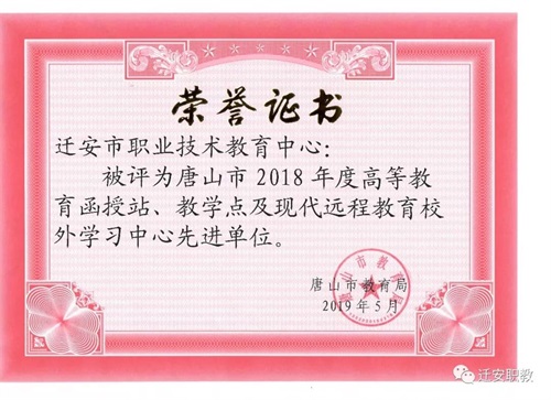 在历年省市对成人教育教学工作的评估中,迁安职教函授站多次被评为先进单位,丁淑华等人被评为先进工作者。