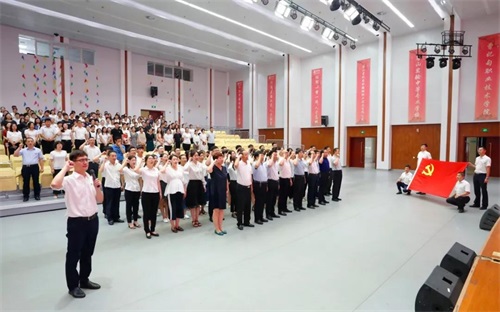 随后,举行了与会全体共产党员重温入党誓词活动。在曹妃甸职业技术学院党委组织委员张宁的带领下,全体党员郑重举起右拳重温入党誓词。
