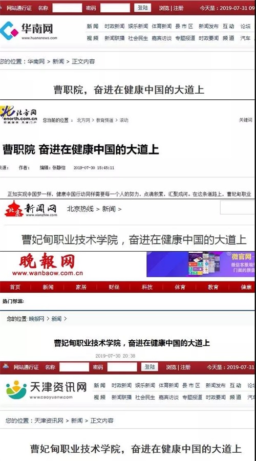 凤凰网、搜狐网、网易、中国经济网、中华网、东方网、北方网等多家媒体纷纷发布《曹妃甸职业技术学院,奋进在健康中国的大道上》一文,全面报道了曹妃甸职业技术学院如何行进在健康中国的道路上。