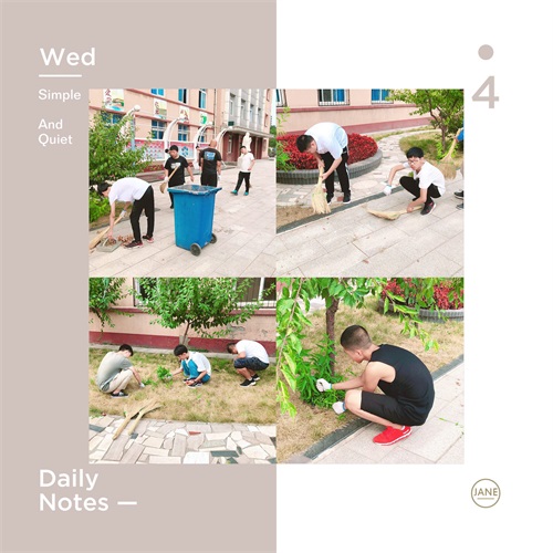 全校师生分工合作、密切配合。劳动过程中,全体师生发扬不怕脏不怕累的精神,对绿化带、校道、教室、宿舍区等进行了一次彻底的净化,一些比较隐蔽,平时容易被忽略的卫生死角,也被师生们细心清理。虽然天气炎热,但大家都干劲十足。