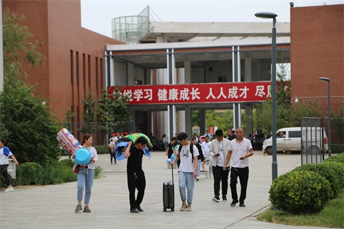 晨初秋雨后,秋气飒然新。9月10日,迁安职教中心高悬标语,树立指引牌,喜迎2019级新生。
