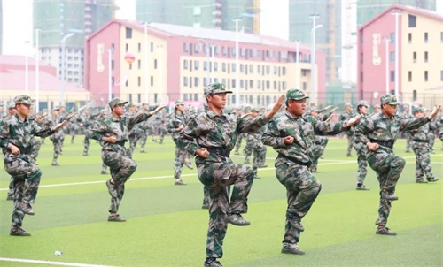 4300余名2019级新生穿着整齐笔挺的军装,个个气宇轩昂、英姿飒爽。他们以连队为单位,喊着铿锵有力的口号,迈着坚定昂扬的步伐,依次走过主席台接受领导和教官们的检阅。分列式结束后,进行了精彩的擒拿拳、八一方阵等团体操表演,队列动作整齐划一、刚柔并济,展现了新一代曹职院人的青春风采,热血青春。