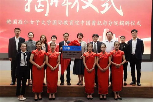 会后,韩国敬仁女子大学国际教育院中国曹妃甸分院揭牌仪式在报告厅举行。