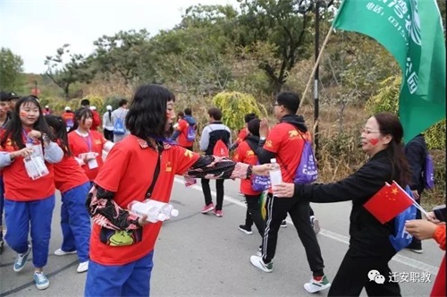 中国迁安国际长城万人徒步大赛是集运动、旅游、休闲为一体的大型健身活动,已成功举办了三届,学校也为之提供了三次最完美的服务,并连续三年获得“最佳志愿服务团队”。和往年一样,13日凌晨五点半,志愿者们便集合完毕,乘车前往比赛现场。350名志愿者分成起点组、5公里终点组、11和25公里终点组以及补给组,分别负责起点人墙护卫、终点记录名次和奖牌发放以及路上食品、饮用水的补给工作,为活动的顺利开展热心服务。活动现场随处可见志愿者们穿梭在人群中的身影,他们面带微笑,积极引导选手前往正确路线,沿途为他们加油助力。当遇到选手口渴或出现身体不适等状况时,他们及时递上爱心水或带领其去医务处。蒙蒙秋雨阻挡不了他们热情的脚步,瑟瑟秋风掩盖不住他们温情的笑脸。