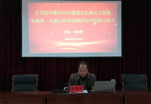 按照学校党委“不忘初心·牢记使命”主题教育活动安排,10月18日下午,党委委员、副校长孙建祥同志为学校学工系统干部和教师上了一堂题为“以习近平新时代中国特色社会主义思想为指导,为唐山幼专的美好明天努力奋斗”的专题党课。
