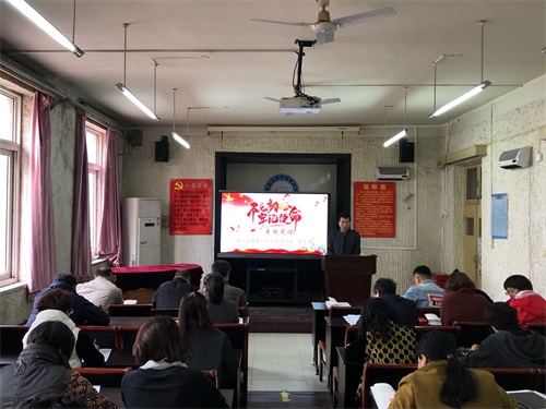 为深入学习宣传贯彻党的十九大精神,勉励广大党员不忘初心,牢记使命,10月22日下午,唐山市路南区职业技术学校陈东利校长为全体党员教师带来了一节专题党课——《不忘初心 牢记使命》。