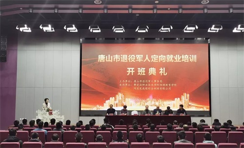 为深入落实贯彻中央、河北省、唐山市退役军人培训就业创业工作任务,全力推进唐山市退役军人适应性培训,提高退役军人适应社会、融入社会的能力,11月8日,由唐山市退役军人事务局主办,曹妃甸职业技术学院、河北龙成煤综合利用有限公司承办的2019年唐山市退役军人定向就业培训开班典礼在曹妃甸职业技术学院举办。