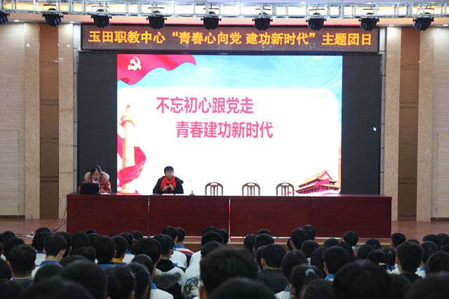 11月21日,玉田职教中心在阶梯教室举行了“青春心向党 建功新时代”主题团日活动。旨在通过“过团日”“上团课”加强青年团员的思想政治学习,普及共青团知识,提高青年团员的政治素养。团委书记薛冬梅、教师马立杰,以及各专业部团干部、团员代表、入团积极分子代表300余人参加。