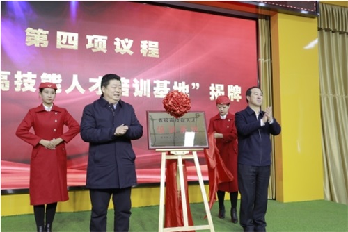张福林在致辞时说,我们在这里举行“乐亭县技工学校”“省级高技能人才培训基地”揭牌仪式,这是乐亭综合职校发展进程中的一件喜事,更是乐亭打造教育发展高地的一件大事。他充分肯定了全县职业教育在促进技术技能人才培养方面所发挥的重要作用,对高技能人才培训基地建设提出了更高要求。