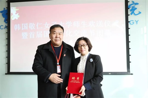 12月20日,韩国敬仁女子大学师生与曹妃甸职业技术学院的文化交流之旅圆满结束。曹妃甸职业技术学院举行欢送仪式,与韩国师生话离别,共叙收获。此次中韩文化交流之旅的结束,也标志着曹妃甸职业技术学院首届国际文化交流节活动正式落幕。