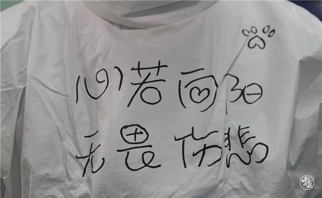 为了便于沟通和辨认,广大医护者在防护服上留下各种各样的签名、签字,那些几分深情、乐观的字句是最美的心声,表达着对祖国和人民的挚爱,宣誓着勇于担当的无私大爱。