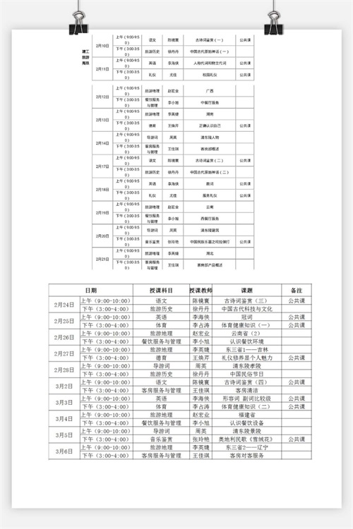 从2月10日到4月17日,建工专业部共组织网课400节,涉及旅游高铁、计算机、建筑和大数据分析4个分支专业,授课教师25位,其中公共基础课80节。新挑战练出新技能,网络授课提升了教师们云授课能力,也拉近了师生之间的距离。从3月30日开始,全体教师到校上课,课余时间给宿舍区和教学楼消毒,提前一个月按课时备课,为开学奠定基础。