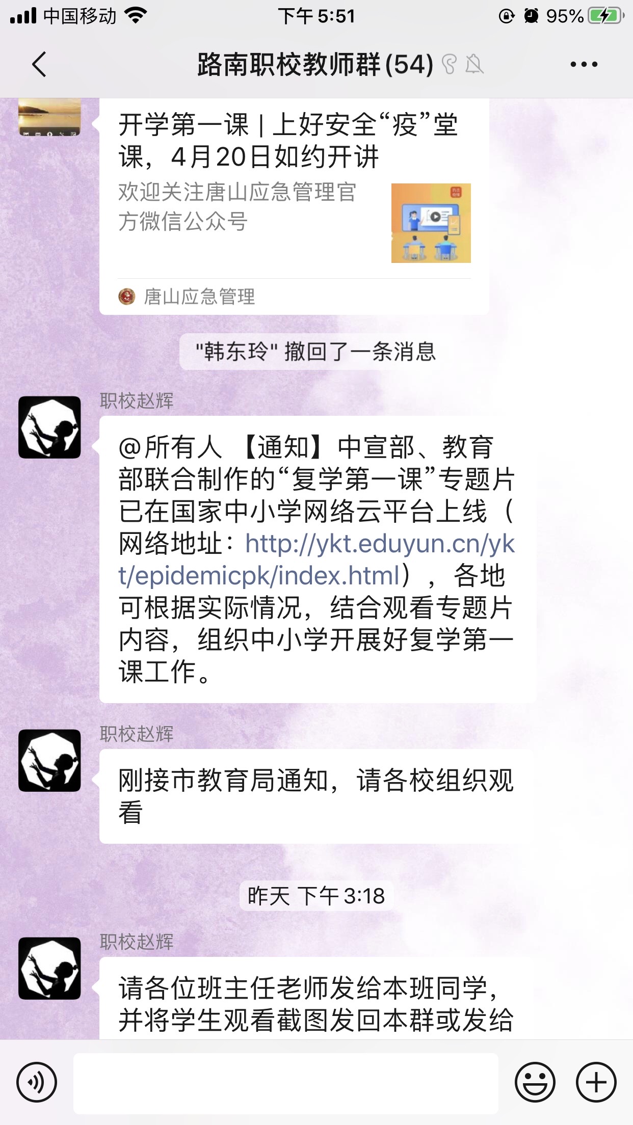 为了做好全体师生复学准备,路南职校全体学生第一时间收看《复学第一课》,了解我国为世界防疫树立的科学典范,为人类健康和世界公共卫生事业作出的积极贡献,学习一线医务工作人员临危不惧、最美逆行的典型事迹,掌握科学防护的知识。