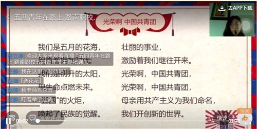 今年是五四运动101周年,2020年5月4日10:00,在唐山市路南区职业技术学校党支部的指导下,团委和政教处团通过钉钉在线直播课堂开展了《五四青年在路上》主题云团课。