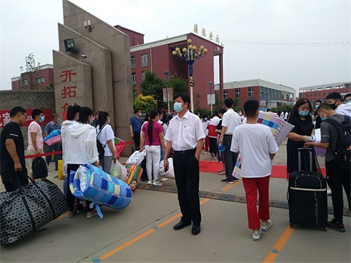 6月9日新生开学,职教中心校长张建国,副校长唐柯、孟凡正、刘大鹏到学校门口检查迎新工作,欢迎新生来到职教这个大家庭!