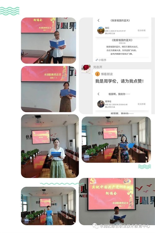 本次活动由校党办组织开展,以诗歌朗诵和唱红歌形式高度激发教职员工爱党、爱国之心。老师们通过线上、线下模式积极踊跃参加活动,以空前高涨的热情,向党的99周年华诞献礼!