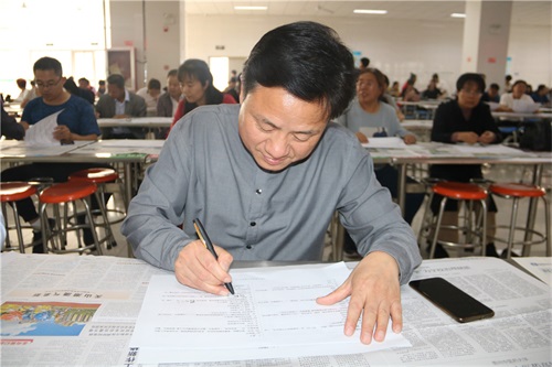 竞赛题目主要围绕“学习强国”平台内的单选题、填空题等内容,由全体教职工参加。老师们屏气凝神、认真作答,整个考场严肃安静,秩序井然。