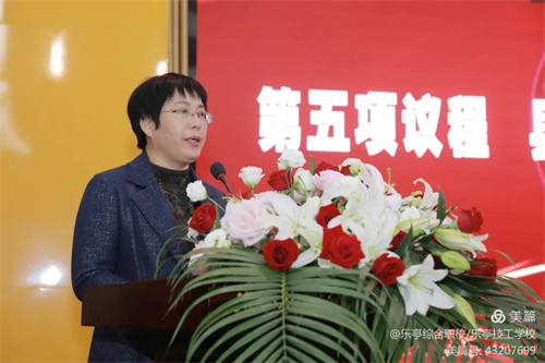 乐亭职校党支部书记、校长李世春随后致辞。在致辞中他特别感谢了各级领导对乐亭职校发展的大力支持,感谢各兄弟院校、企业代表能够与我们并肩为乐亭职业教育发展做出积极的贡献。随后他简要介绍了近年来乐亭职业教育丰硕的办学成果和职校美好的发展前景,表达了乐亭综合职校办好人民满意的职业教育和为社会培养高质量技术技能型人才的信心和决心。